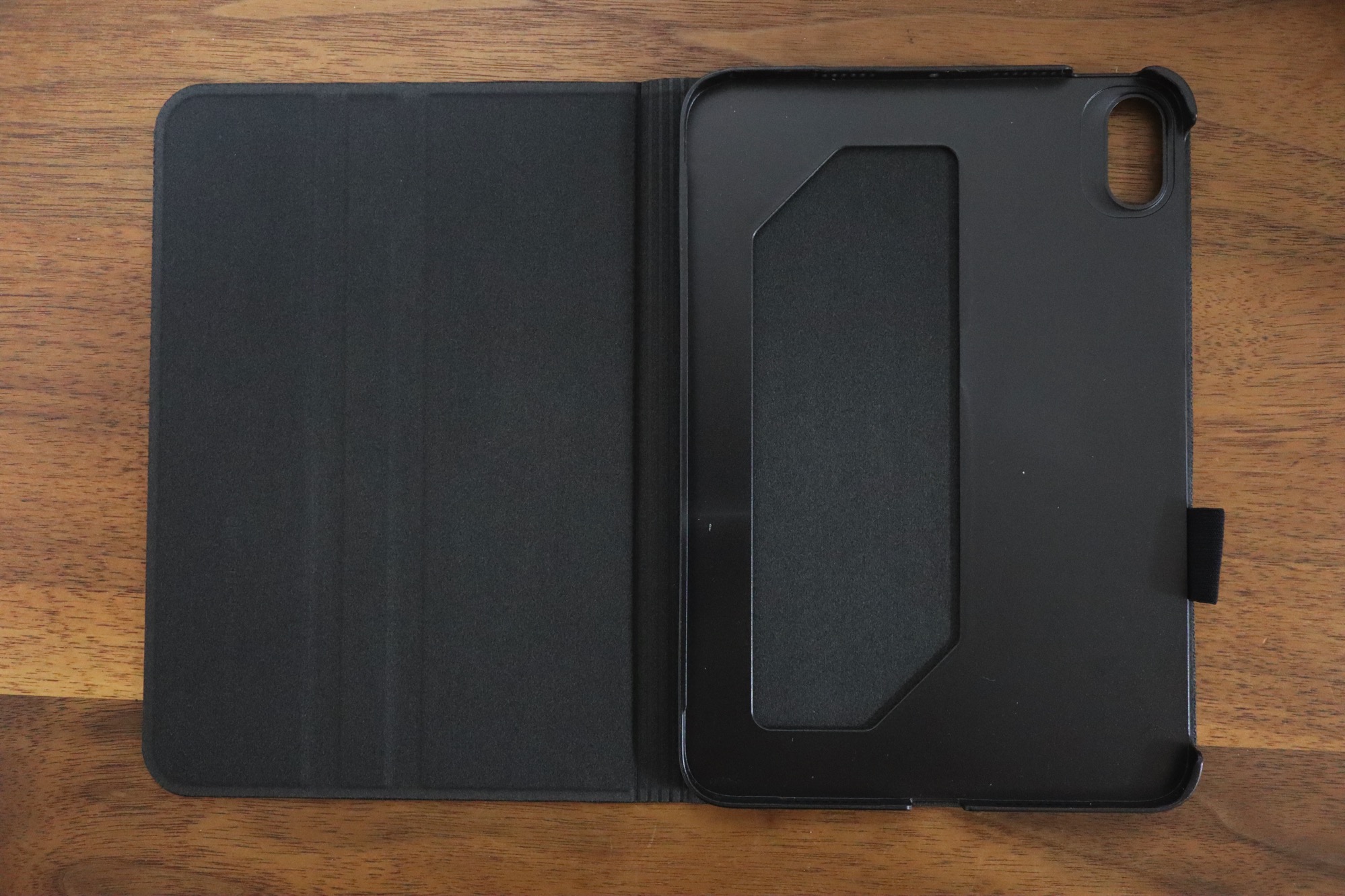 表面は折り曲がらない1枚で、二段階の角度で立てられる溝がついています。